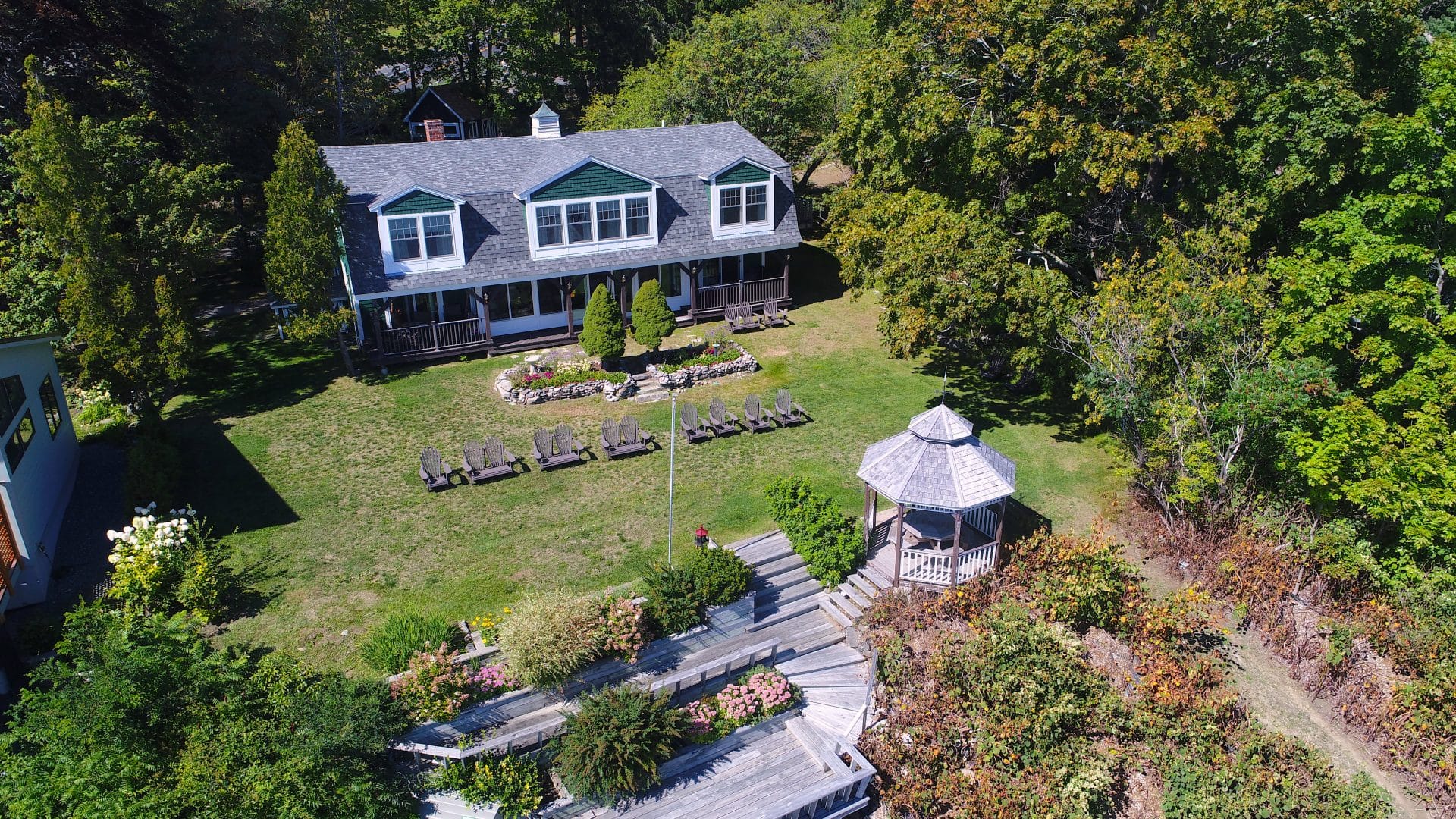 This home has been updated and enjoys a waterfront location with expansive views from most rooms of the water, Porcupine Islands and Bar Harbor all 1/4 mile from the main entrance to Acadia National Park! On the first floor you’ll find a newly renovated kitchen, dining room with views, large living room, den with pullout sofa, a bedroom with water views, a full bath as well as a glassed in sunporch with spectacular views. Upstairs, you’ll find three bedrooms with en suite baths and another bedroom and bath and a laundry room. There is a nice lawn area, deck, gazebo and steps to the beach with kayaks provided for your use. You may never leave the property! If you do decide to venture out, the park is just around the corner and downtown Bar Harbor is a five minute drive. Friday to Friday rentals at this cottage. Bar Harbor Vacation Rental Permit #VR2R25-160. 2025 season is fully booked.
